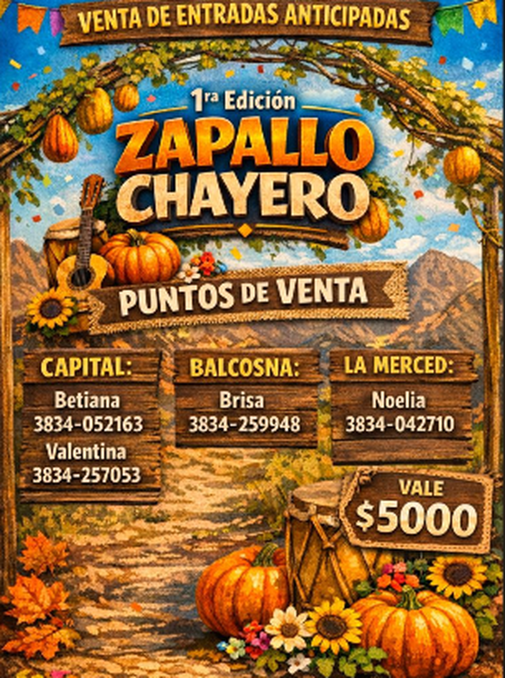 La localidad de Balcozna se prepara para vivir la primera edición de la Peña del Zapallo Chayero, un evento comunitario que combina producción local, tradiciones culturales y propuestas artísticas. La celebración tendrá lugar el lunes 16 de febrero desde las 20 horas en la Escuela N.º 211, y convoca a vecinos y visitantes de toda la región a compartir una noche de encuentro, música y fiesta popular. Las entradas anticipadas tienen un costo de $5000 y ya se encuentran a la venta en Capital, La Merced y Balcozna. La organización del evento surge como iniciativa de un grupo de jóvenes de la zona que busca recuperar el espíritu de las primeras fiestas del zapallo en la localidad.